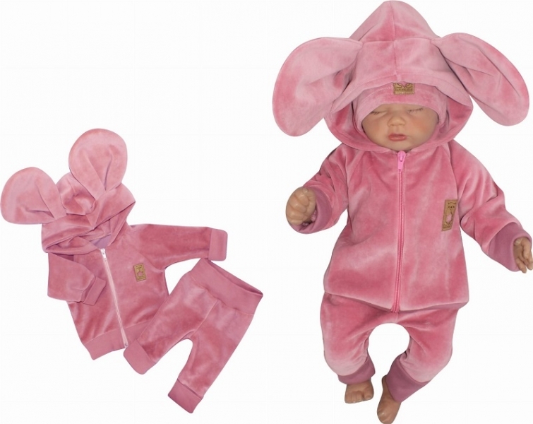 Z&Z Velurová, semišková tepláková souprava s oušky MYŠKA - pudrová, vel. 62; 62 (2-3m)