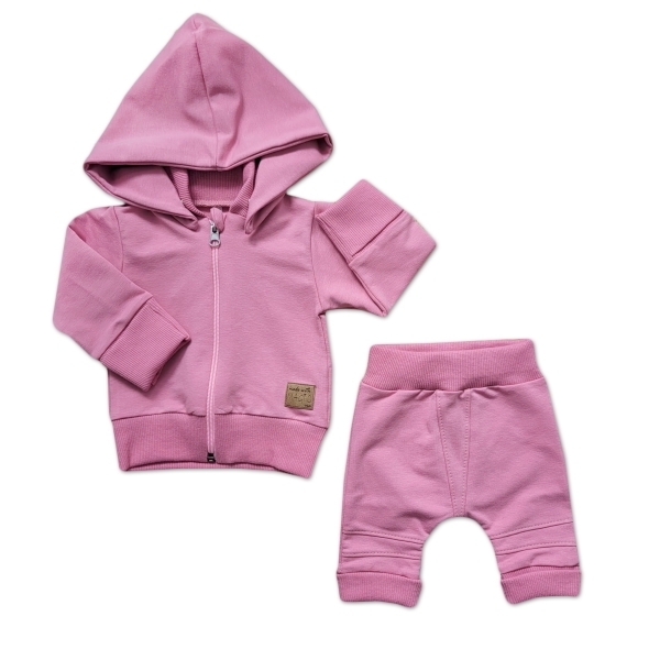 2-dílná bavlněná tepláková souprava s odepínací kapucí - růžová, vel. 86; 86 (12-18m)