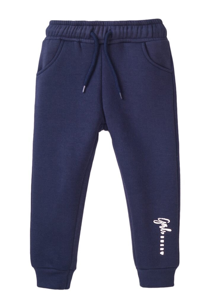 Měkké a pohodlné tepláky se svislými nápisy, kapsami a šňůrkou v pase. Praktická volba pro aktivní dívky - na každodenní nošení i na sportovní aktivity.