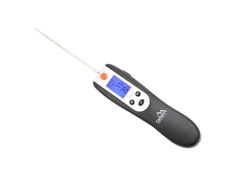 Praktický, skládací pomocník pro grilování opatřený digitálním teploměrem, či časovačem a chytrým nastavitelným prostředím. U přístroje lze nastavit druh masa a požadovaný stupeň propečení a dokonce vlastní (hovězí, telecí, jehněčí, vepřové, kuře a krocan, burgery) USER režim pro nastavení libovolné teploty. Po dosažení nastavených teplot začne přístroj signalizovat zvukovým tónem a blikáním displeje. Přístroj lze rovněž použít jako časovač, který pohlídá dosažení nastaveného času. Zařízení je navíc opatřeno led svítilnou pro přísvit při grilování ve večerních hodinách. O napájení se starají 2x AAA baterie.