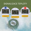 systémem - červené světlo varuje před příliš vysokou teplotou, zatímco modré