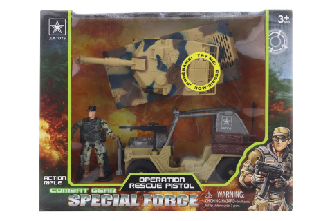 - Obsah balení: terénní auto, tank s pohonem a zvuky, plastový vojáček.