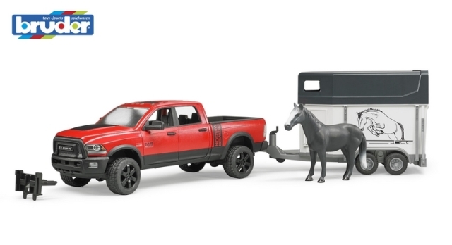 Bruder Terénní auto RAM s přepravníkem na koně Každého milovníka terénních vozů ale i příznivce koní potěší tento kvalitně zpracovaný model. Jako každý model Bruder má i teréňák RAM spoustu funkčních prvků, např. otevírací dveře nebo zadní čelo korby. Každý terénní vůz musí mít dobře odpružené nápravy s kvalitními profilovanými pneumatikami, což nechybí ani tomuto modelu. Přední nápravu auta je možné ovládat také prodlouženým volantem díky otvoru ve střeše. Potřebujete přepravit svého Bruder koně? Koník nastoupí do přepravníku zadními otevíracími dveřmi a řidič či ošetřovatel jej mohou zkontrolovat vstupem na boční straně přepravníku. Balení obsahuje: terénní auto RAM, přepravník na koně a figurku koně Hlavní vlastnosti: