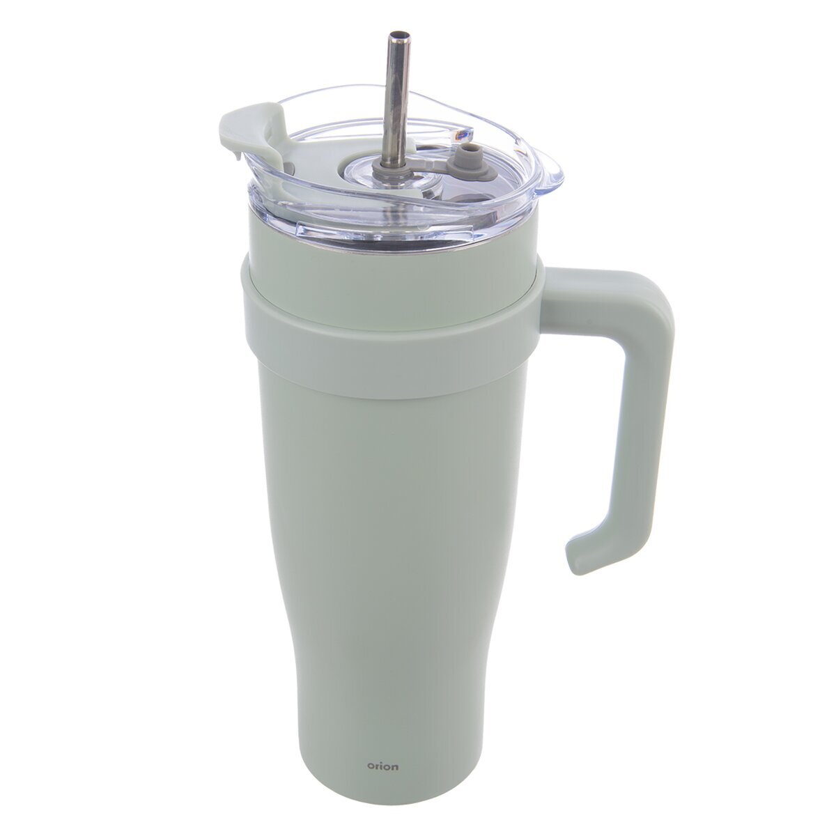 Dvoustěnný termo maxi pohár s brčkem udrží Váš nápoj dlouho teplý nebo naopak chladný. Je praktický pro řidiče na cesty, ale i na běžné pití nápojů v kanceláři, doma, na zahradě. Využijete ho na teplé nápoje během cestování v zimním období i na nápoje s ledem v teplých dnech. Plastové nasazovací víčko s těsněním, nerezové brčko, uzavíratelný otvor pro pití s těsněním, otvor pro brčko se silikonovým uzavíráním/těsněním (v případě, že právě brčko nevyužíváte), praktické ucho pro pohodlné držení a přenášení. Nejlépe plní funkci naplněný na 90 %. Před naplněním nalijte horkou vodu pro teplé nápoje, aby se termohrnek ohřál. Nebo studenou vodu pro ochlazení před naplněním studeným nápojem. Zakryjte a po cca 5 minutách vodu vylijte. Termohrnek udrží nápoj v požadované teplotě po dlouhou dobu - studený až 8 hodin a teplý až 12 hodin, nicméně vše záleží na podmínkách, plnosti nádoby a okolní teplotě. Určeno pro nošení ve svislé poloze: víčko je navrženo tak, aby minimalizovalo únik tekutiny během přenášení a konzumace, ale nedoporučujeme jej naklánět, převracet nebo nosit v tašce ve vodorovné poloze. Materiál: nerezová ocel (hrnek, brčko), plast PP (rukojeť), plast PS (víčko), silikon. Rozměry: pr. 10 cm, v. poháru s víčkem 27 cm, celková v. s brčkem 29 cm, užitný o. 1 l, celkový o. 1,2 l. Není vhodný do myčky na nádobí.