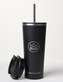 Designový pohár z nerezové oceli s brčkem na horké i studené nápoje. Pohár je vybaven dvěma víčky - jedno na brčko, které je součástí a druhé vyklápěcí.