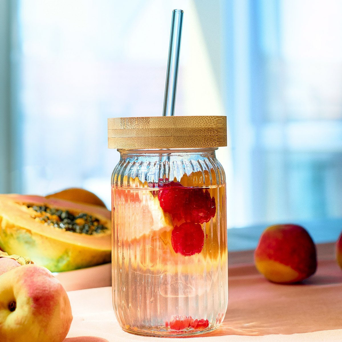 Sklenice | ZIKKIE | rýhovaná s brčkem | 0,45 l | 894805 Homla