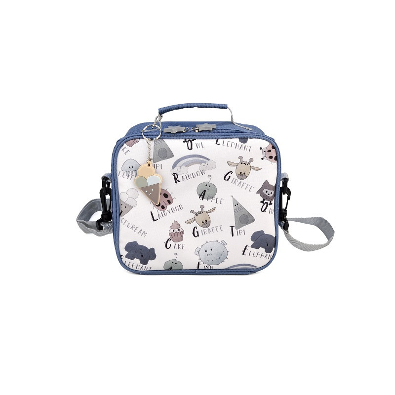 Dětská termotaška na svačinu s nastavitelným popruhem přes rameno a poutkem na zavěšení či do ruky.