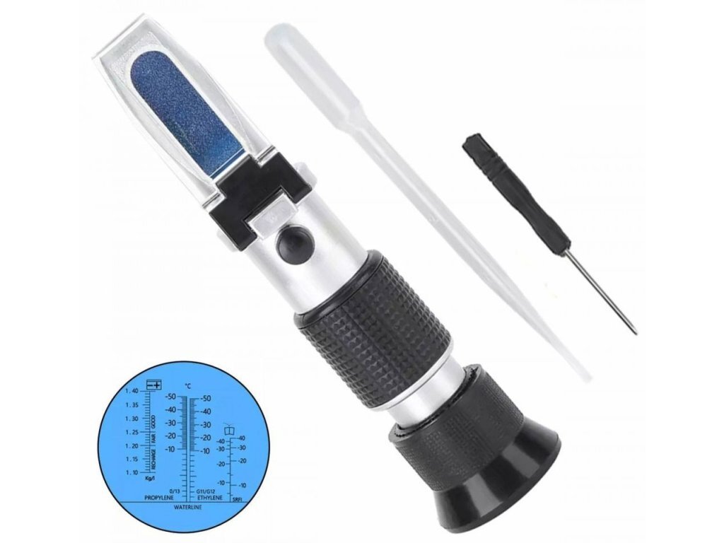 Refraktometr je zařízení, které umožňuje stanovení fyzikálních vlastností kapaliny měřením indexu lomu na hranici média. Refraktometrem je možné určit stupeň nabití akumulátoru, teplotu tuhnutí chladících kapalin na bázi propylenglykolu nebo etylalkoholu a taktéž teplotu tuhnutí kapalin do ostřikovačů. Výrobek je dodáván v kompletním stavu a nevyžaduje žádnou další montáž.