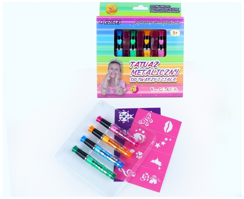 Tatuaż metaliczny do twarzy i ciała, 4 dług. i szablony, FAD-6813,Aliga