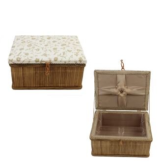 Štípaný bambus, víko-nábytková dekorační látka, kazeta je včetně plastové přihrádky.Kazeta má rozměry 22 x16 cm, výšku 11 cm.