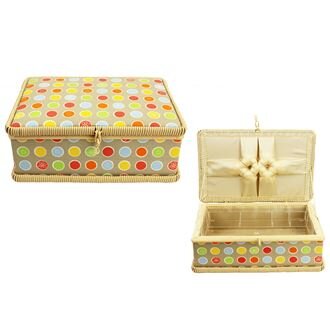 Kazeta je včetně plastové přihrádky. Rozměry : 29 x 21 cm, výška 11 cm. Materiál : látka, zakončení a omotávky plast.