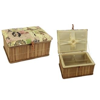 Štípaný bambus, víko-nábytková dekorační látka, kazeta je včetně plastové přihrádky.Kazeta má rozměry 22 x16 cm, výšku 11cm.