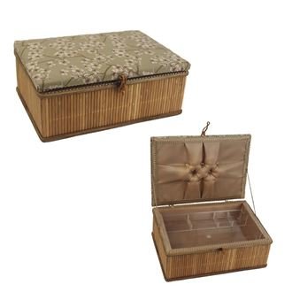 Kazeta na šití.Štípaný bambus, víko-nábytková dekorační látka, kazeta je včetně plastové přihrádky.Rozměry : 27 x 19 cm, výška 12 cm.