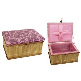 Štípaný bambus, víko-nábytková dekorační látka, kazeta je včetně plastové přihrádky.Kazeta má rozměry 22 x16 cm, výšku 11cm.