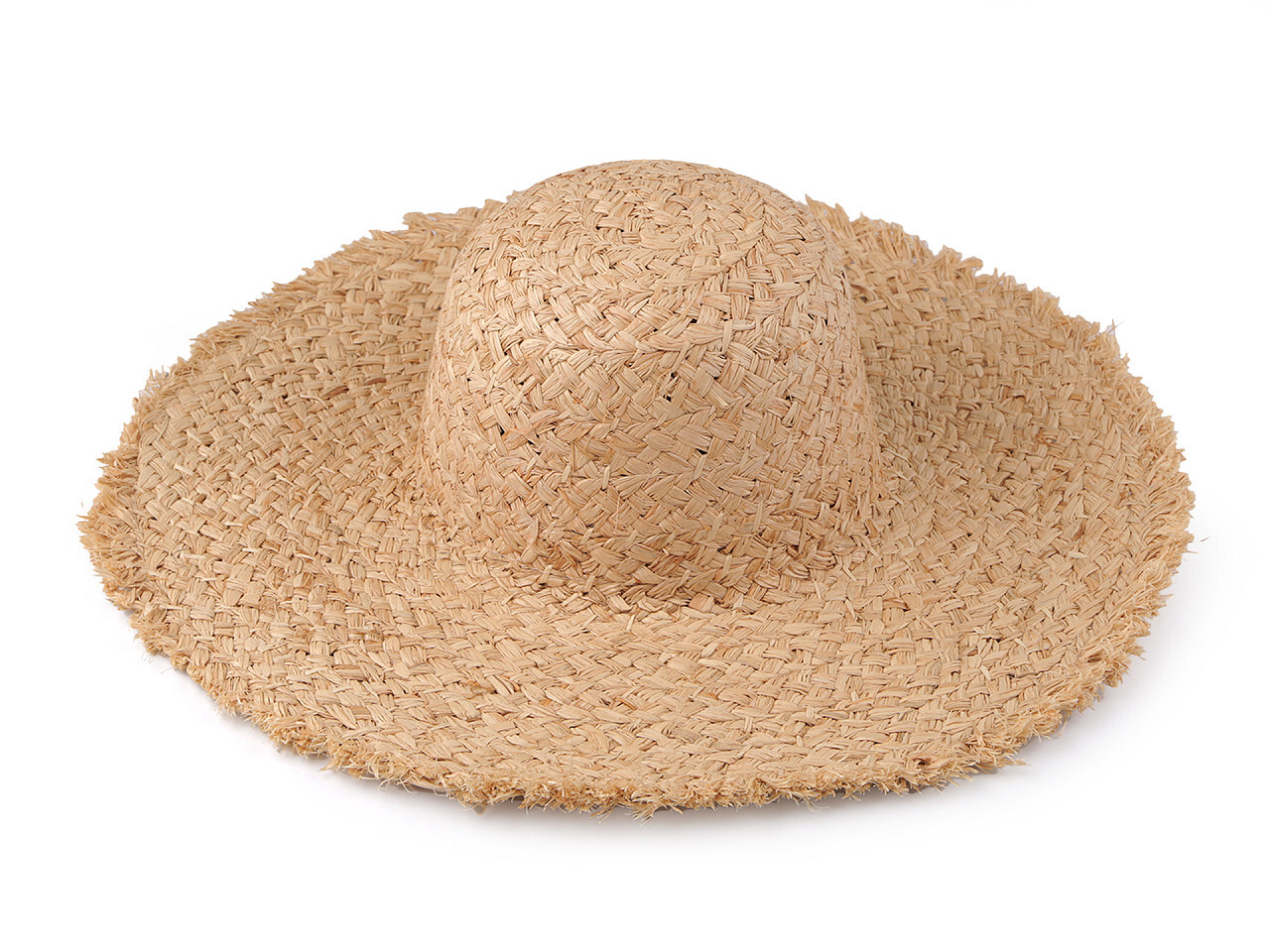 Dámský letní klobouk / slamák k dozdobení s otřepeným okrajem - 1 ks - přírodní