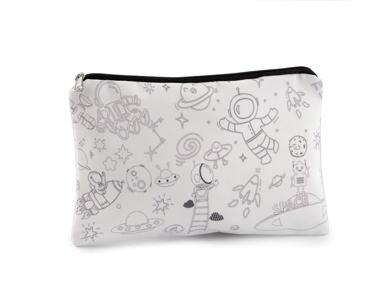 Textilní pouzdro se zipem k domalování 13x22 cm - 1 ks - 2 Off White kosmonaut