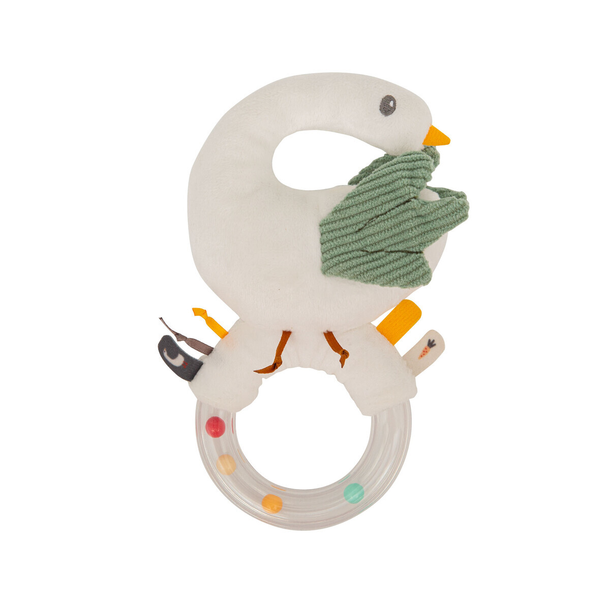 Textilná hrkálka Abby je nežná, hravá a dokonale prispôsobená tým najmenším ručičkám. Už na prvý pohľad zaujme svojím roztomilým dizajnom húsky a jemnými farbami, ktoré pôsobia upokojujúco a zároveň podnecujú zvedavosť bábätka. Vyrobená je z kvalitného, mäkučkého textilu, ktorý je príjemný na dotyk a bezpečný aj pri častom mojkaní či skúmaní ústami.