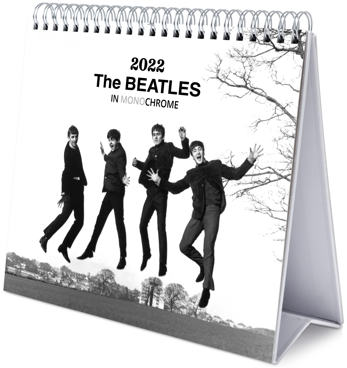 Stolní kalendář s obrázky slavné anglické skupiny The Beatles pro rok 2022 ve formátu 17 x 20 cm.