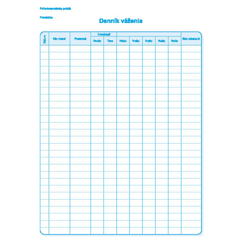 Denník váženia A4, 100 listov číst celé