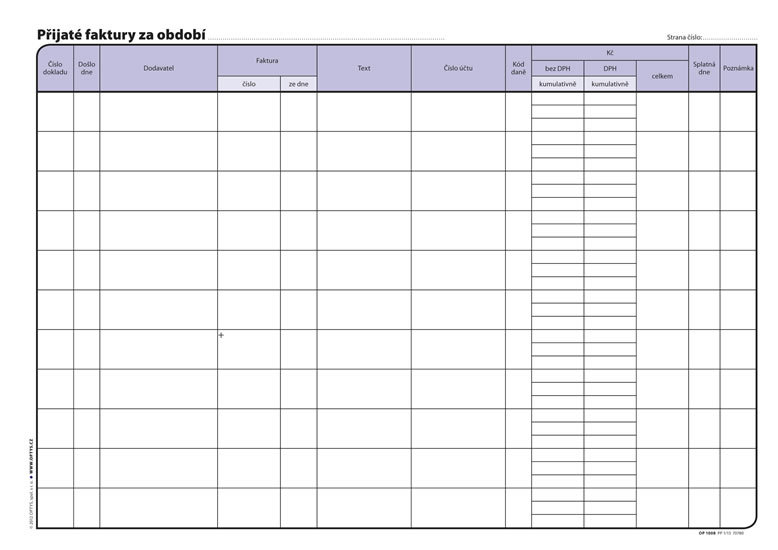 Kniha pohledávek a závazků pro daňovou evidenci (jednoduché účetnictví) i podvojné účetnictví tiskopis je dle nové legislativy přizpůsoben pro 3. daň z přidané hodnoty nepropisovací formát A4 na šířku 21 řádků na list 32 listů číst celé
