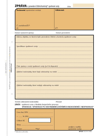 Zpráva o provedení kontroly spalinové cesty, A5, 100 listů, NCR