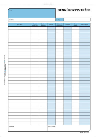 Zefektivněte své podnikání a mějte své tržby vždy pod kontrolou s praktickým denním rozpisem tržby na formát A4!