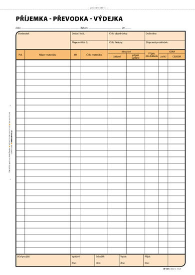 Usnadněte si evidenci a sledování zásob s naším kvalitním blokem příjemek, převodek a výdejek! Tento praktický formulář je nepostradatelným pomocníkem pro efektivní organizaci skladových operací.