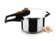 Díky bajonetovému uzávěru se s hrncem snadno manipuluje a silikonové těsnění zaručuje spolehlivou těsnost. Pracovní tlak je nastavitelný na 0,6 nebo 0,9 baru, což umožňuje přizpůsobit vaření vašim potřebám a typům pokrmů.
