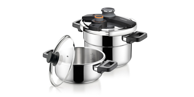 Luxusní tlakový hrnec se dvěma nádobami 4.0 a 6.0 l, univerzální tlakovou poklicí se snadným nastavením ideálního tlaku IDEALCOOK pro rychlou a šetrnou přípravu všech obvyklých pokrmů. Díky velkému otočnému uzávěru víka lze hrnec pohodlně uzavřít i otevřít jen jednou rukou. Tlakový hrnec ULTIMA DUO je dokonale skladný, nádobu 6.0 l lze skladovat vloženou v nádobě 4.0 l. Opatřeno indikátorem tlaku, 4 pojistkami a ergonomickými úchyty, vyrobeno z prvotřídní nerezavějící oceli a odolného plastu. Třívrstvé sendvičové dno je vhodné pro všechny typy sporáků - plynové, elektrické, sklokeramické a indukční. Dodáváno s univerzální skleněnou poklicí, obě nádoby lze používat i pro běžné vaření. 5 roků záruka.