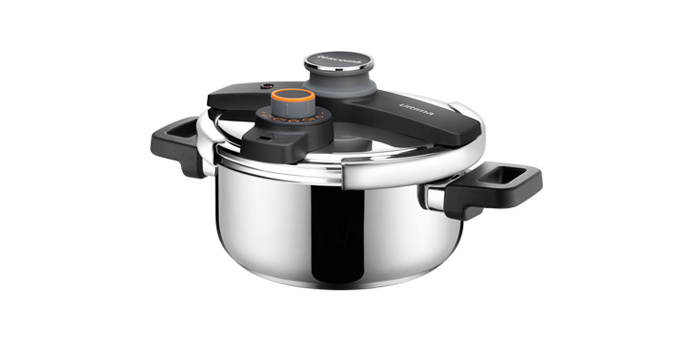 Luxusní tlakový hrnec se snadným nastavením ideálního tlaku IDEALCOOK a kvalitním antiadhezním povlakem. Vynikající pro rychlou a šetrnou přípravu všech obvyklých pokrmů bez rizika připálení. Díky velkému otočnému uzávěru víka lze hrnec pohodlně uzavřít i otevřít jen jednou rukou. Tlakový hrnec je opatřen indikátorem tlaku, 4 pojistkami a ergonomickými úchyty, je vyroben z prvotřídní nerezavějící oceli a odolného plastu. Třívrstvé sendvičové dno je vhodné pro všechny typy sporáků - plynové, elektrické, sklokeramické a indukční. 5 roků záruka.
