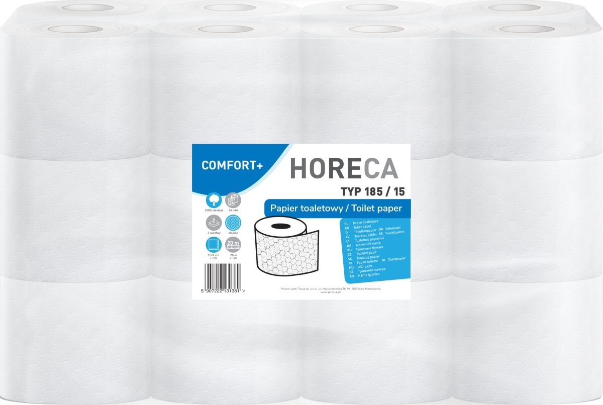 HORECA Comfort toaletní papír 2vrstvý, 24 ks je kvalitní a ekonomické řešení pro domácnosti, kanceláře, hotely, restaurace i další provozy. Díky výrobě ze 100 % celulózy nabízí optimální kombinaci měkkosti, pevnosti a savosti.
