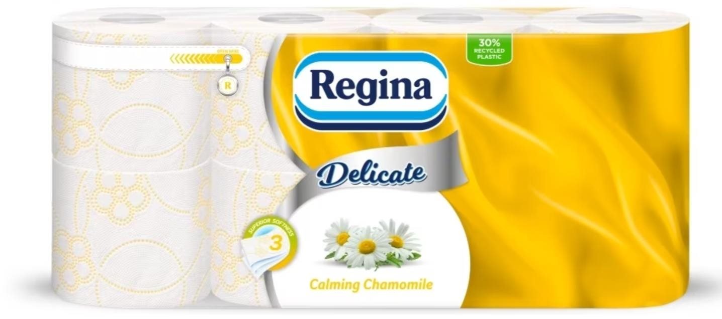 Toaletní papír Regina Chamomile vyniká jemným květinovým potiskem a heřmánkovou vůní.Toaletní papír je třívrstvý, vyroben ze 100% celulósy.Jedno balení obsahuje 8 rolí. číst celé
