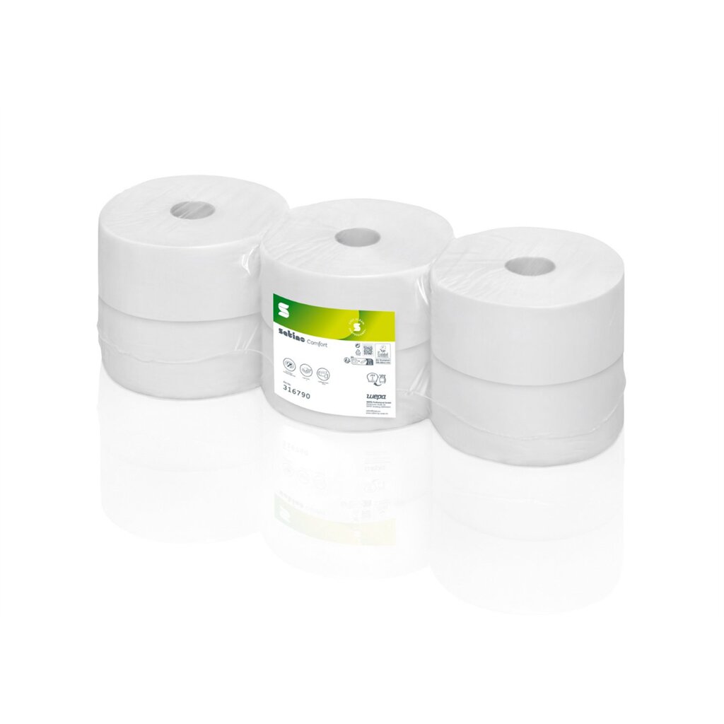 Toaletní papír Satino Comfort velké role Kompatibilní s JT2 Kombinace udržitelnosti a ekonomické efektivity: naše kvalitní produkty vyrobené ze 100% recyklovaného papíru jsou super měkké a vynikají vysokou savostí a bělostí. Velká role zajišťuje dlouhé intervaly doplňování. - 2-vrstvý -...