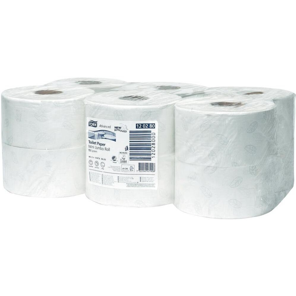 Tork Mini Jumbo toaletní papír, Advanced, Recykl, Bílá, 9,4 x 20 cm, 170 m / 850 útržků, (12 ks v ba