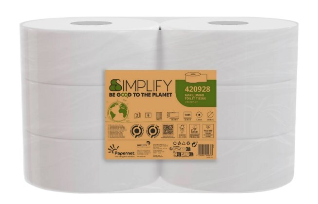 Toaletní papír v roli Jumbo Simplify, maxi, 2 vr., celulóza, 300 m, 24,5 cm, 6 ks
