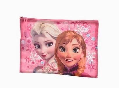 Taštička na zip Disney Frozen.Růžové provedení.Rozměry: 23x16 cm.100% PVC, zadní strana trasparentní s perforací.Oficiální licence.