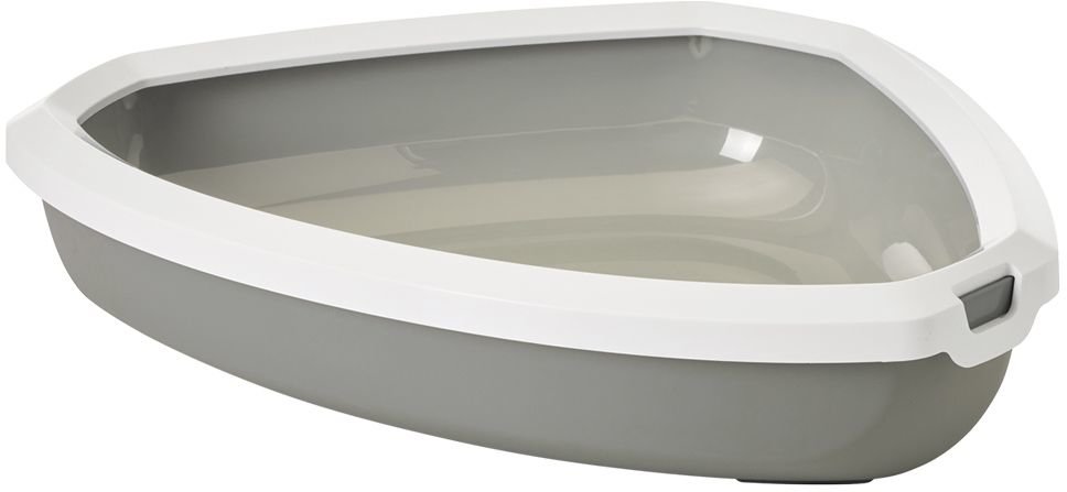 Skladná rohová toaleta, díky odjímatelnému okraji vhodná také pro koťata, nemocné či starší kočky. Kočičí toaleta nesmí samozřejmě v žádné domácnosti s kočkou chybět a musí najít místo i v malých bytech. Tato rohová toaleta je díky svému trojúheníkovému tvaru mimořádně skladná. Díky své ideální výšce je pro kočky pohodlně přístupná. Ochranný okraj se postará o to, že při zahrabávání zůstane okolí toalety čisté. Okraj je k toaletě připevněn pomocí dvou svorek a při čištění se může jednoduše sundat. Celkové rozměry: 58,5 x 46 x 13,5 cm. Barva šedá.