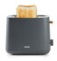 Topinkovač na 2 tousty s automatickým vycentrováním pečiva, tak aby se dosáhlo rovnoměrného opečení. Uživatel ocení pevné plechové tělo stříkané do matné šedé barvy a 1 000 W. Vybrat si můžete ze 6 stupňů opečení, což je regulováno nastaveným časem.