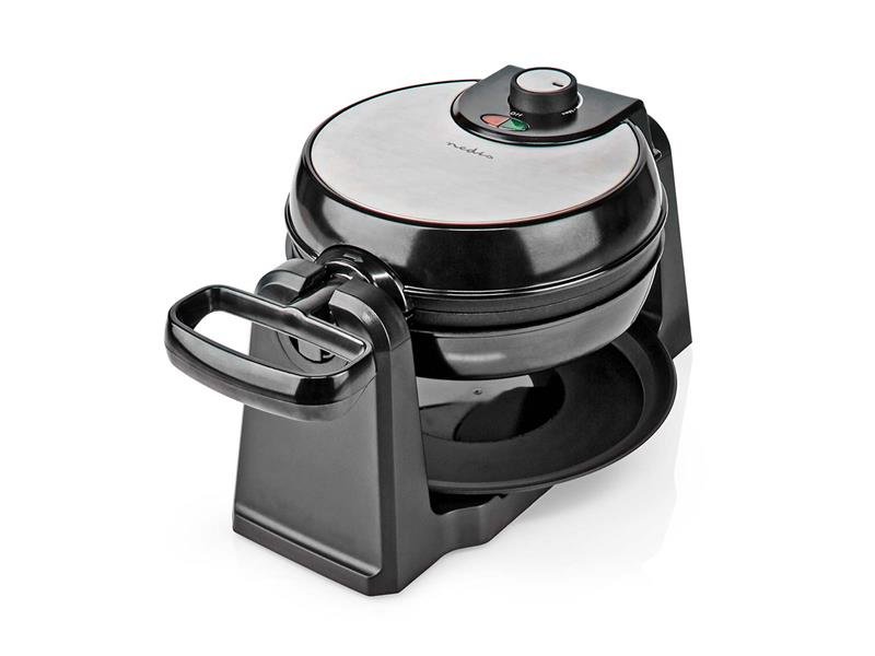 S tímto Nedis® vaflovačem s výkonem 1000 W a funkcí rotace můžete upéct ty nejlahodnější vafle během chvilky. Průměr 17 cm Vám umožňuje rovnoměrně péct 4 vafle najednou. Funkce otočení pomáhá rovnoměrnému pečení a dokonalému zezlátnutí. S ovládacím regulátorem teploty můžete vafle upéct přesně tak, jak máte rádi. Kontrolka přesně ukazuje, kdy je vaflovač připravený k použití. Vysoce kvalitní nepřilnavé pečicí desky jsou vybaveny širokým přepadem pro zachytávání přetékajícího těsta. Toto v kombinaci s odnímatelným odkapávacím zásobníkem usnadňuje čištění po použití, protože je přebytečné těsto zachyceno při otáčení vaflovače.Vaflovač má integrovanou rukojeť odolnou proti teplu, díky které můžete bezpečně držet a otáčet vaflovač během pečení. Protiskluzové nožky zajišťují, že produkt stojí stabilně na jakémkoli povrchu. Vaflovač lze pohodlně skladovat ve svislé i vodorovné poloze.