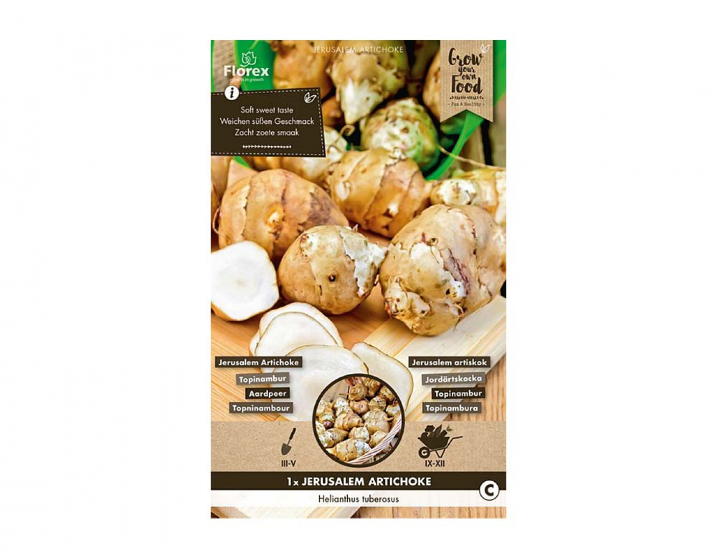 Topinambur má jedlé, bílé hlízy, které mají nepravidelný tvar. Vzhledem k obsahu přírodních cukrů je vhodný pro diabetiky. Chuť je mírně sladká. Topinambur sázíme na slunném, otevřeném místě do vlhké, úrodné půdy. Hlízy můžete sklízet od listopadu, mohou se konzumovat syrové, vařené nebo pečené na plátky. Sklizené topinambury je obtížné skladovat.