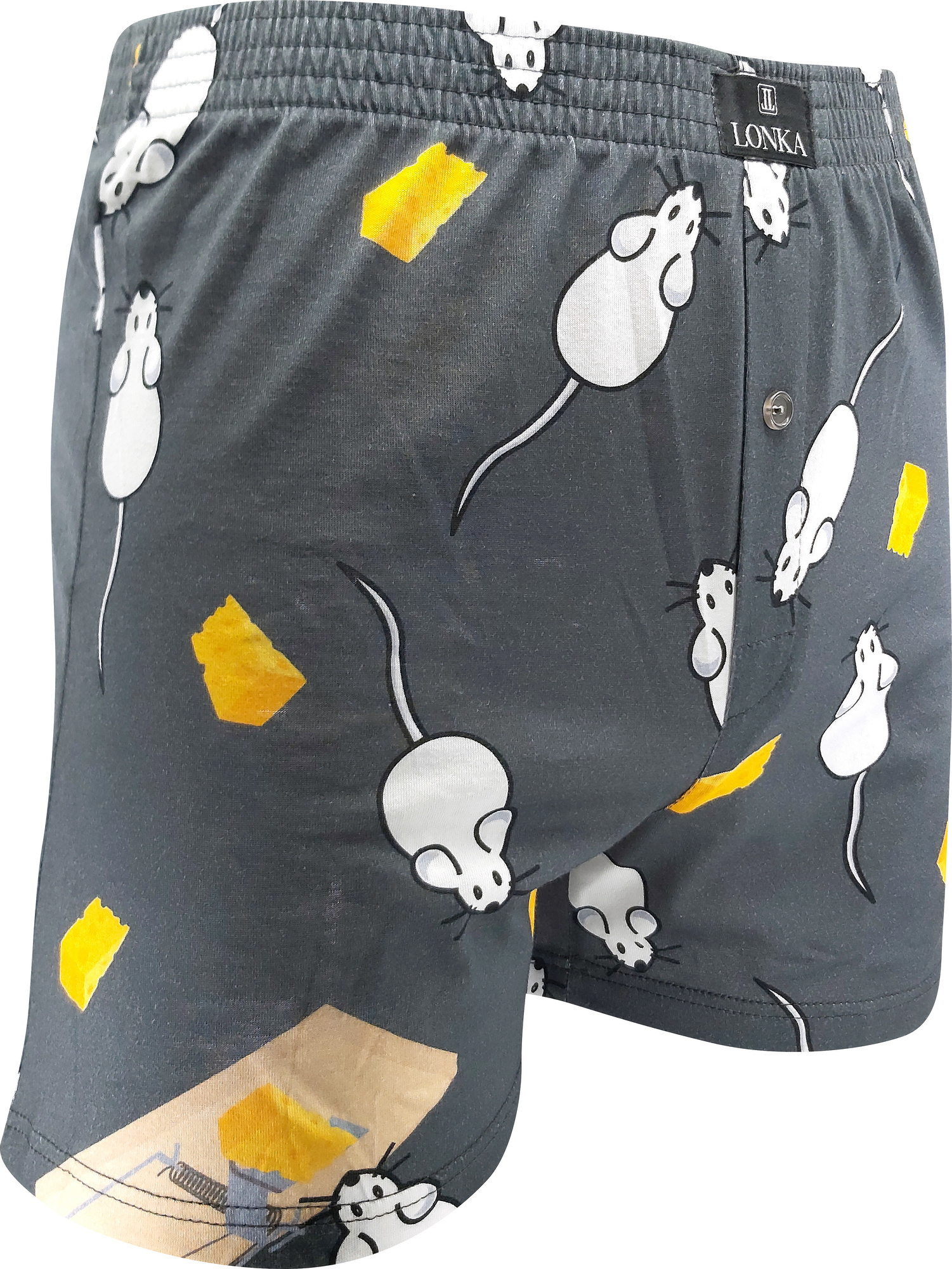 Pánské bavlněné trenýrky Lonka® KARLOS IMAGE jsou trendy trenky z digitálně potištěného 100% bavlněného úpletu. Takový materiál neosahuje žádné další příměsi, je čistě přírodní, a proto přátelský k pokožce. Bavlněný úplet je pružný, střih je volný, takže trenýrky perfektně padnou každé postavě. Guma je skrytá v pase a nedotýká se tak pokožky. Nosit je můžete bez obav po celý den. Výběr motivů pánských trenýrek je velký, určitě si vyberete z mnoha vtipných obrázků, navíc mají knoflíček na falešném poklopci. Vtipné a originální obrázky jsou to pravé pro „hravé já“ každého muže. Pánské trenýrky jsou dostupné i v nadměrné velikosti.