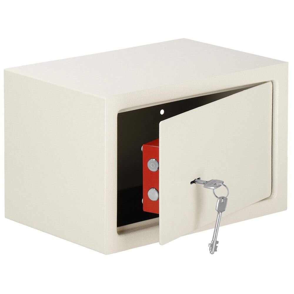 Sejf je vybaven kvalitním dvoubodovým systémem zamykání, který zvyšuje odolnost proti násilnému otevření. Silnostěnná konstrukce trezoru navíc odolává běžným pokusům o vloupání. Praktická bezpečnostní pojistka zajišťuje, že se trezor neotevře ani při pokusu o manipulaci se zámkem. Pro pohodlné a diskrétní umístění lze trezor snadno připevnit do zdi, nábytku, na stěnu či k podlaze, čímž zajistíte, že nebude jednoduše přemístitelný.
