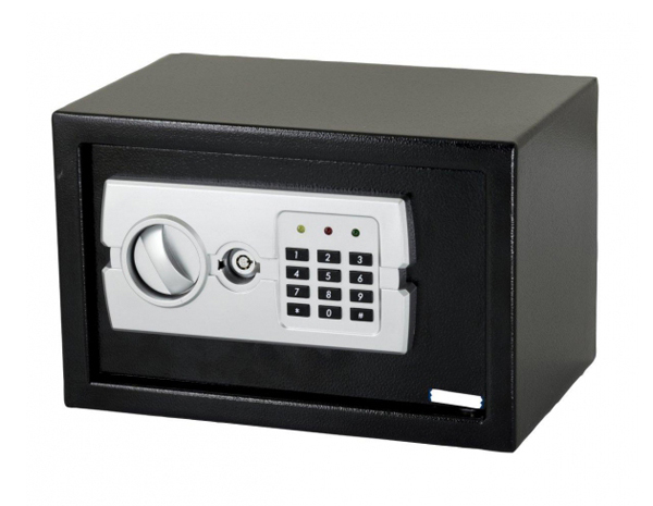 Tento moderní trezor v elegantní černé barvě je vyroben z kvalitního kovu a disponuje elektronickým zámkem s možností nastavení 3 až 8-místného číselného kódu pro rychlý a pohodlný přístup. V případě nouze je součástí dodávky klíč pro manuální otevření. Trezor můžete připevnit k podlaze nebo zdi díky čtyřem speciálním otvorům, což výrazně zvyšuje jeho bezpečnost a zabraňuje snadnému odcizení. Prostor uvnitř trezoru je dostatečně velký pro uložení peněz, šperků, cestovních pasů, fotoaparátů a dalších cenností.