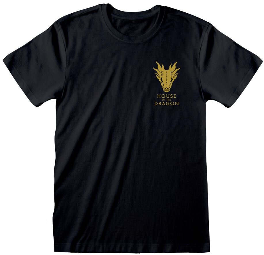 Oficiální pánské tričko a doplňkové zboží z katalogu produktů s logem, grafikou a fotografiemi amerického fantasy seriálu House of the dragon.