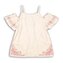 Dívčí bílá bavlněná halenka s růžovými nášivkami. Halenka je na ramínka se spadlými rukávy. číst celé