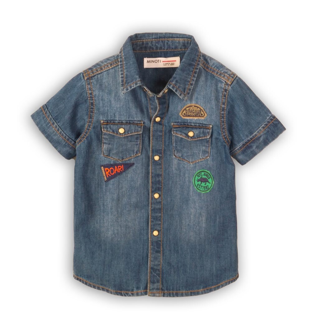 Košile džínová chlapecká s krátkým rukávem, Minoti, Roar 2, modrá - 110/116