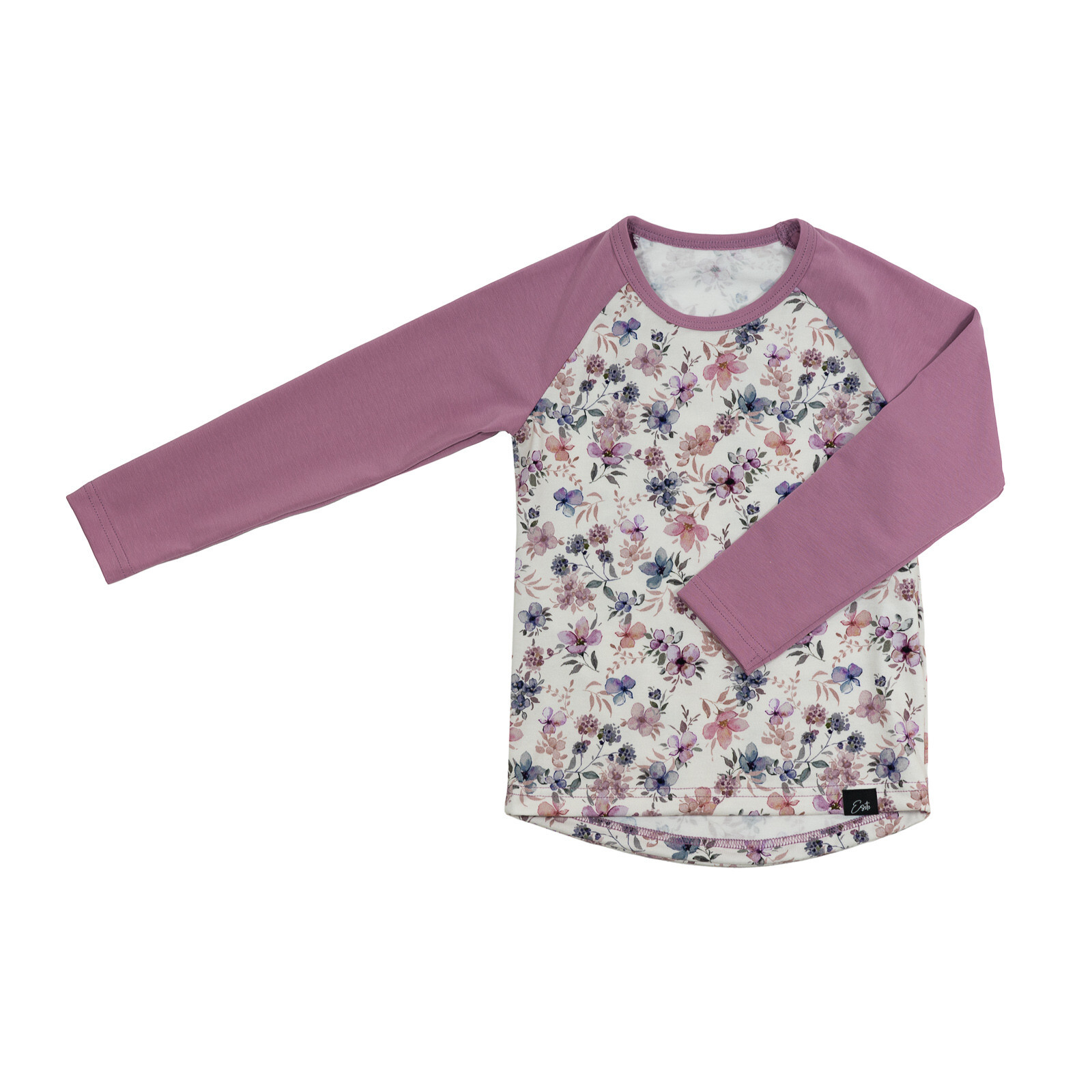 Dívčí triko s dlouhým rukávem Violet flowers Cream, má ráda každá holka. Moderní bavlněné tričko s elastem je kvalitní, pružný materiál s precizním ušitím. Ideální na léto pro aktivní děti. Využijete ho do školky, školy, sport, ale i na běžné a slavnostní nošení.