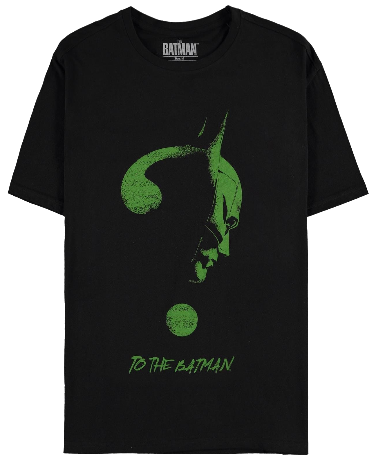 Černé pánské tričko s motivem Superpadoucha Riddlera a jeho posměšnou otázku Batmanovi.