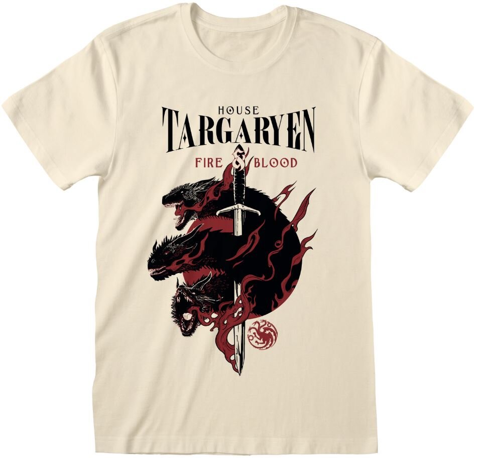 Béžové pánské tričko s potiskem hlav tří draků, probodnutých mečem, což je znak rodu Targaryenů. Tričko je vhodné pro všechny fanoušky seriálu Game of Thrones.