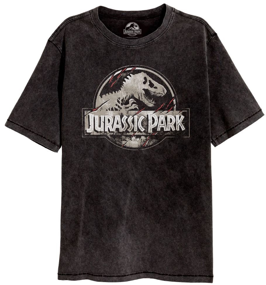 Atraktivní černé tričko s grafikou Scratched logo Jurassic Park (Poškrábané logo Jurského Parku).